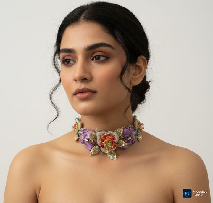 Bright, festive, and full of life — this handcrafted beaded floral Necklace bring a burst of colour to your look. Perfect for weddings, parties, festive outfits, and for anyone who loves unique statement jewellery.