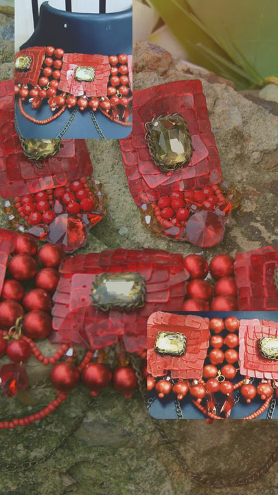 Royal Scarlet Croc-Textured Statement Choker & Earrings Set – Handmade Luxury Jewellery